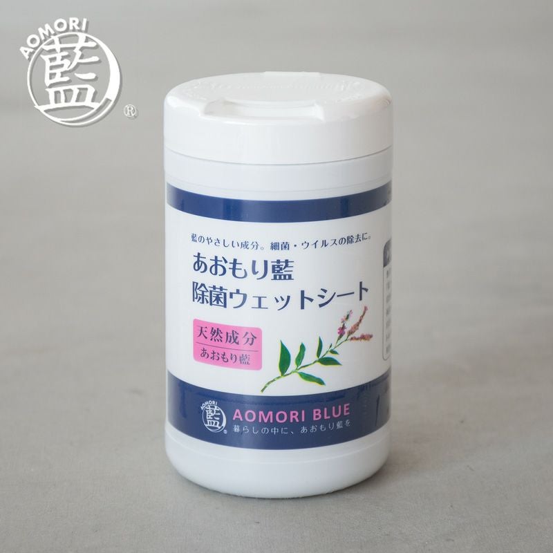 近年多くの効果が発見され注目を集める「あおもり藍」シリーズ。こちらはアルコール入りウェットティッシュに、あおもり藍の天然成分を配合したウェットティッシュです。