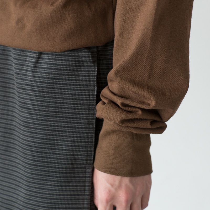ブラウンは航空団の機長と航空機の出撃準備や機体の維持を担当する部署。普段着として取り入れやすいカラーなので人気があります。着丈が長めなのでそのまま着るとロングシャツ風に、タックインすればきれい目カットソーとして活躍。女性ならチュニックとして着こなすのもおすすめ。スリットの入ったダックテールの裾もポイントです。