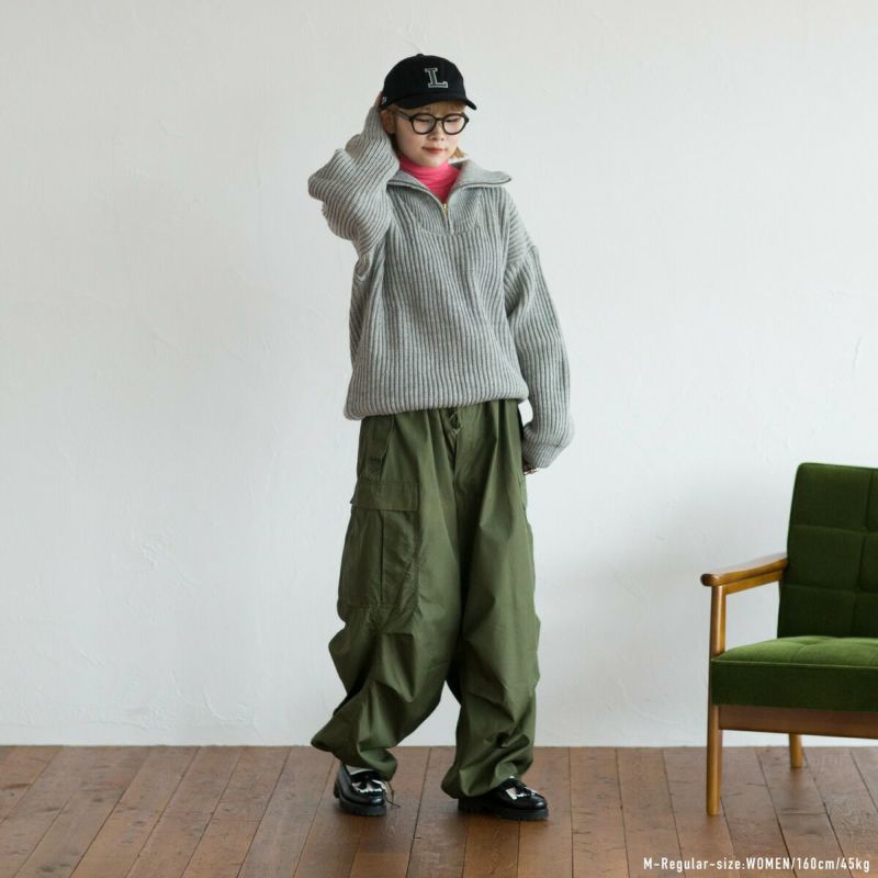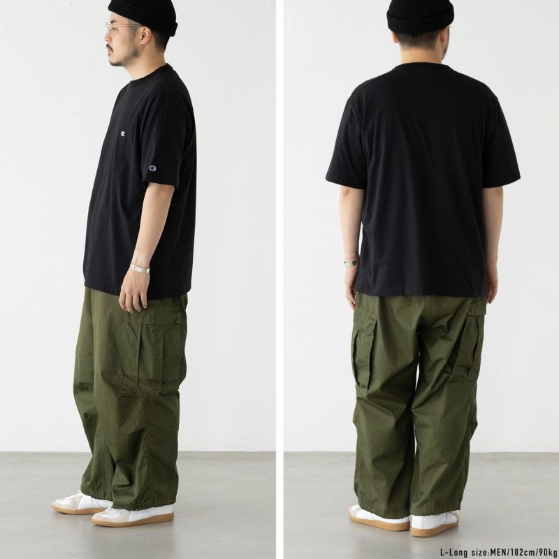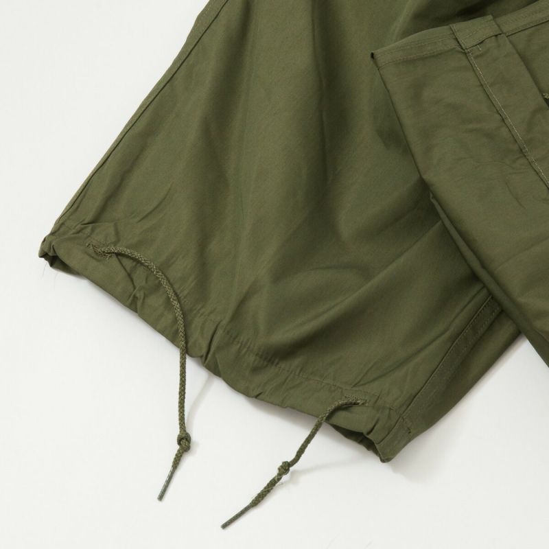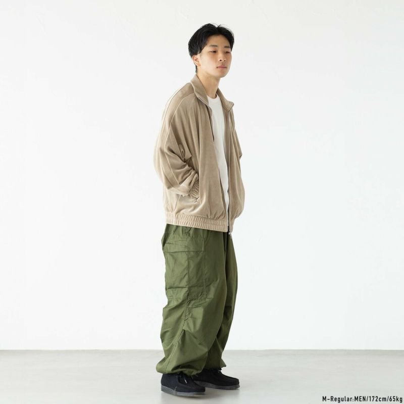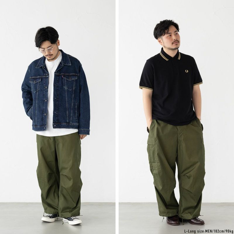 軍パンの中でも特別ワイドな極太シルエット、ウエストのドローコードを絞ってルーズに穿いてもクールにキマります。