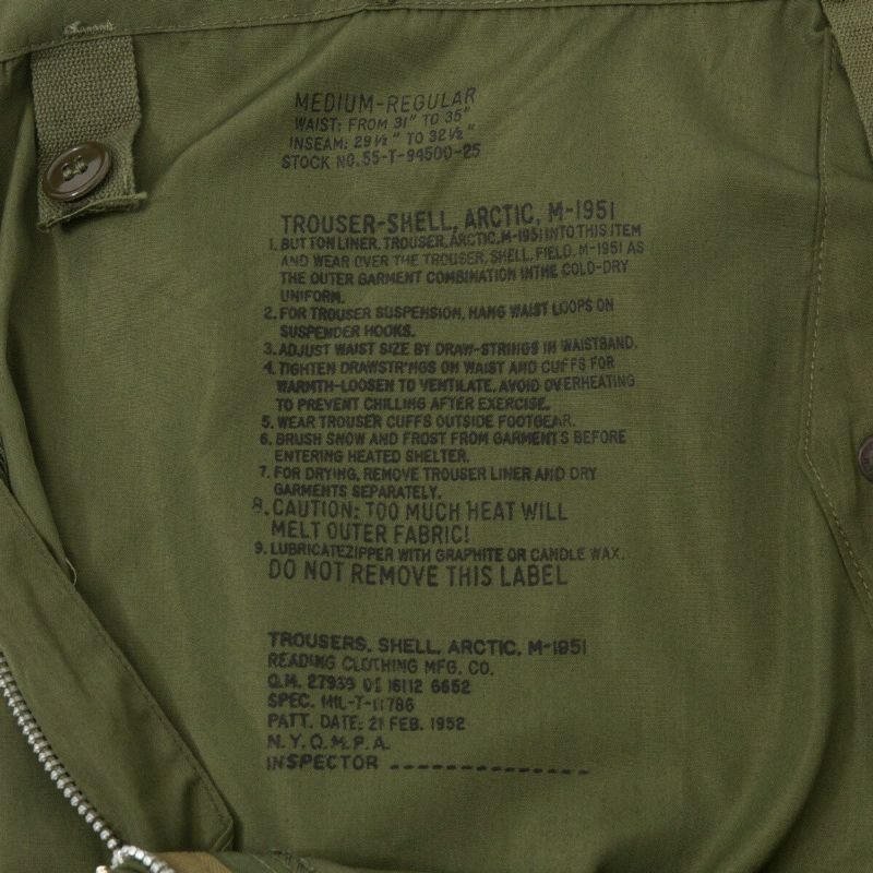 1950年代頃に製造された、U.S.ARMY M-51ウインドオーバーパンツの実物デッドストック。