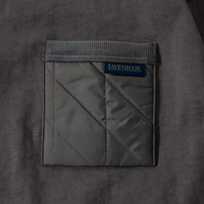 ラベンハム製キルト生地のパッチポケットが印象的。コーデュロイのバインディングとLavタブ(ピスネーム)が施されています。