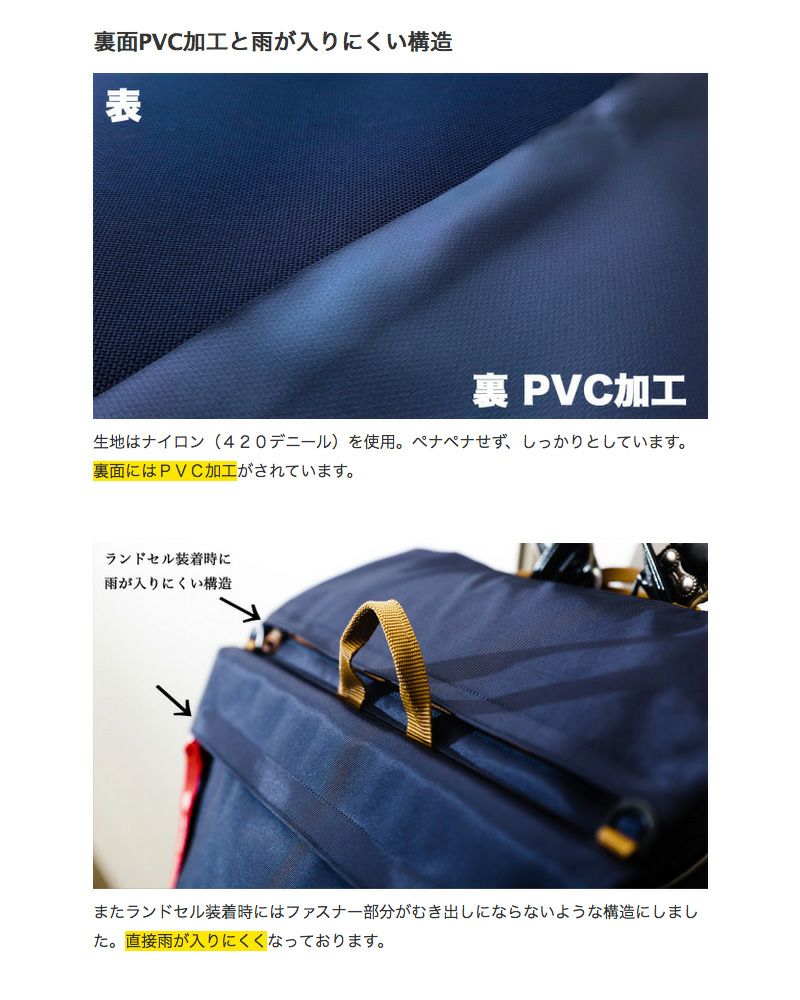少し大きめサイズでランドセルを雨や汚れからしっかりガードします。傘をささずに手ぶらで登下校できるので安全安心。