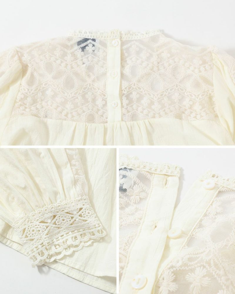 透け感のある繊細なレースが印象的なこのブラウスはコットン90%、ナイロン10%の混紡素材で仕立てられています。コットンのやわらかさと、ナイロン混紡による程よいハリと耐久性のいいとこどり素材。