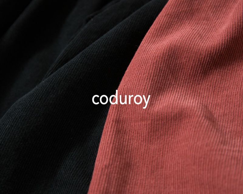 綿100%の細畝コーデュロイ生地を使用。やわらかく肌なじみがよい素材で、軽やかな着心地が魅力です。
