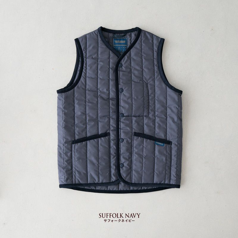 LAVENHAM 縦型キルトのカラーレスベスト。