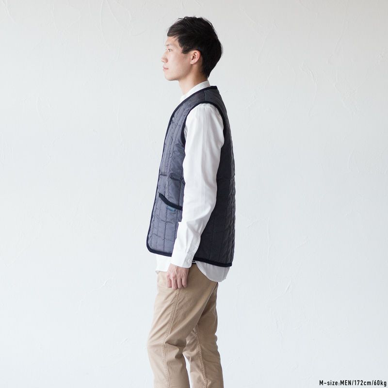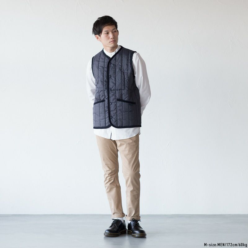 ブランドのシグニチャーである 「ラブンスター」を採用したカラーレスジレ。縦型のキルトパターンを採用し、ジャケットインはもちろん、カジュアルにも取り入れやすいルックスに仕上がっています。定番ダイヤモンドキルトの「ダブリン」と比較してややゆとりがあるので、ニットやシャツの上にも重ねやすいシルエット。軽量かつ、保温性・耐久性に優れ、ビジネスからタウンユースまで幅広いシーンで活躍してくれます。