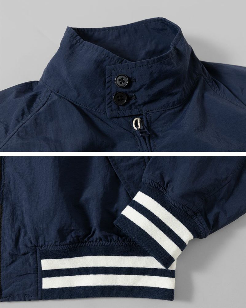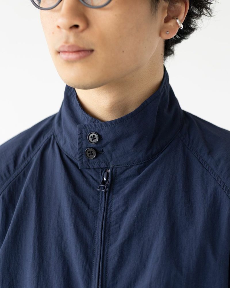 一見すると普遍的なジャケットですが、日本人の身体に馴染むよう設計されたコンパクトなラグランスリーブ、ジッパーが噛まぬようフロントのヘムにタコ糸を入れるなどの細かな拘りとディテールで大人が似合う一着に仕上がっています。
