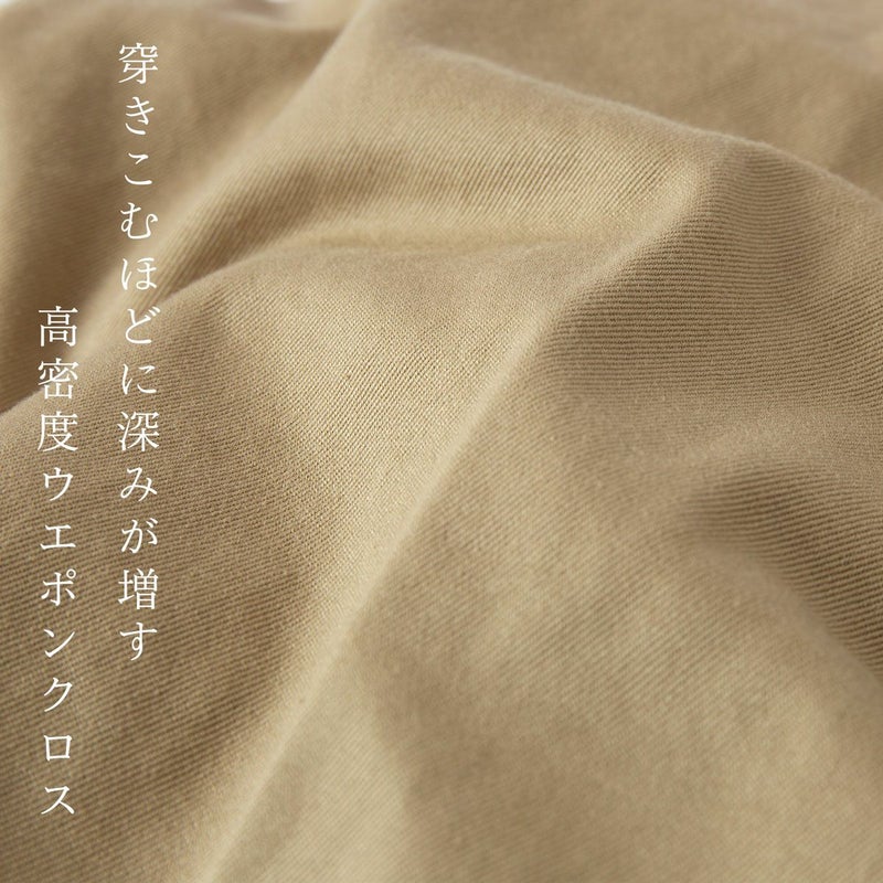 高密度に織られたウェストポイントチノクロスは耐久性があり、アタリや色落ちなどヴィンテージ調の経年変化が期待できます。