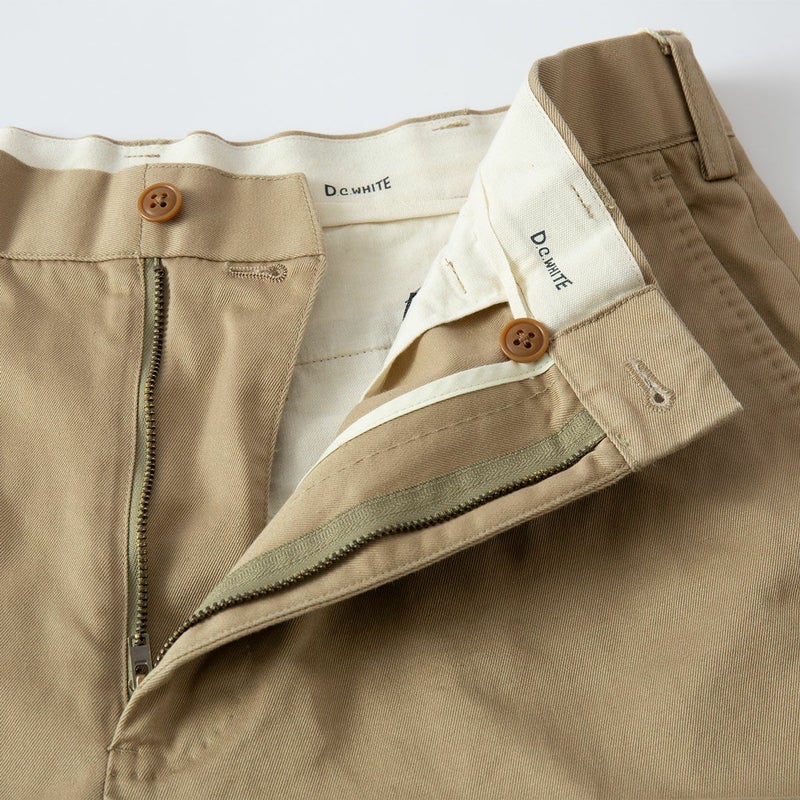 こちらは米国のウエストポイント陸軍士官学校に納入されていたデッドストックのウエポンクロスを用いたチノトラウザー。