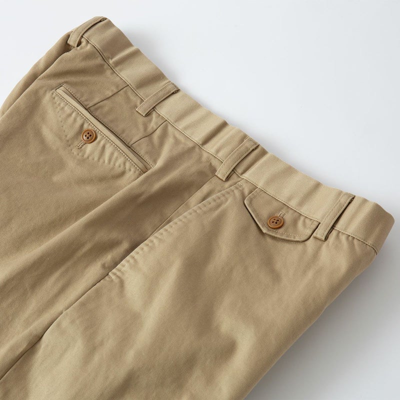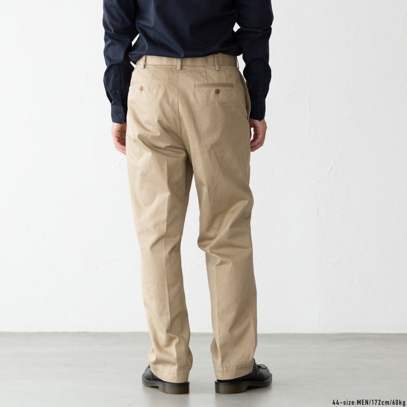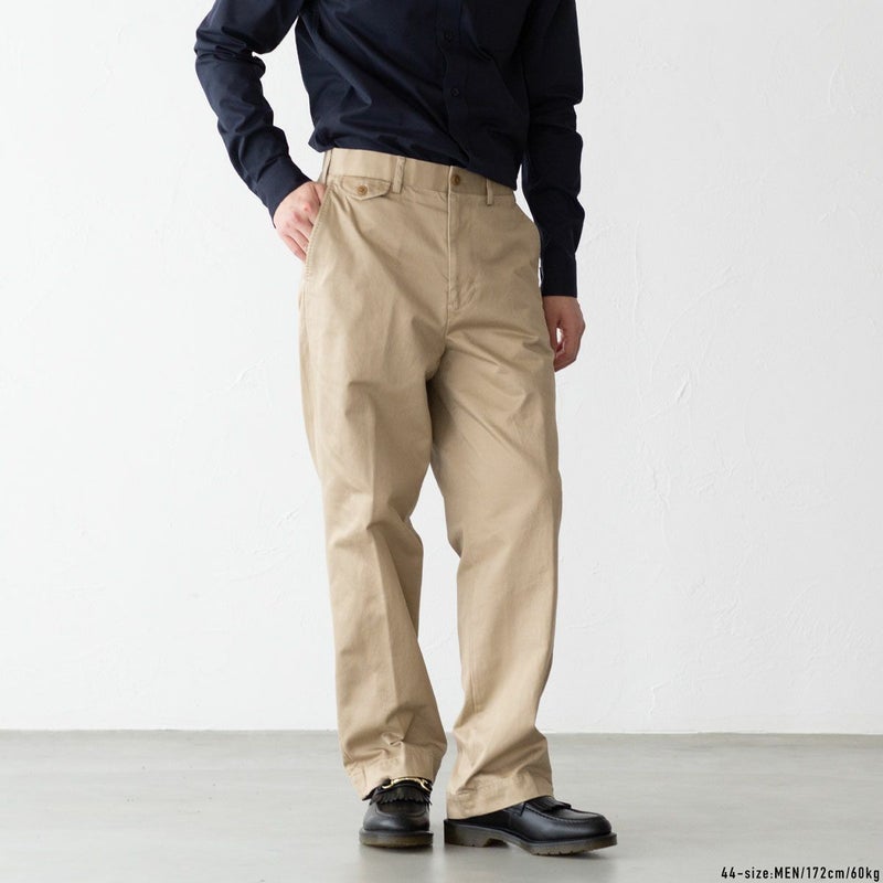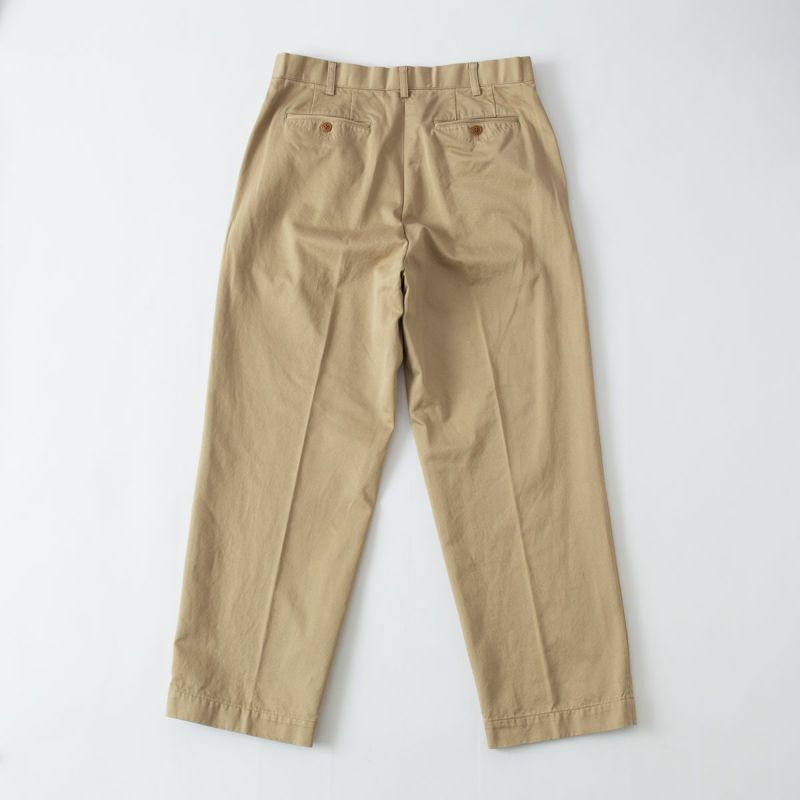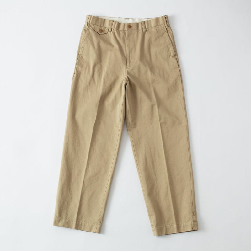 絶妙なサイズバランス、拘りのディテール、希少価値の高いウェポン生地と、三拍子揃った究極のチノパン、いかがでしょうか。