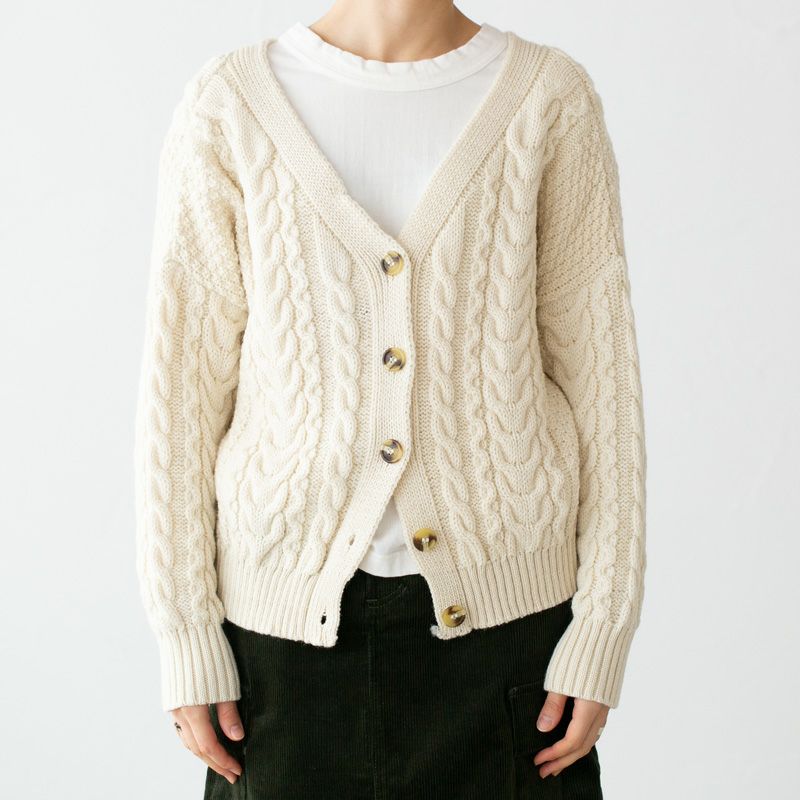 他の画像を見る メリノウール100%の、抜け感たっぷり2wayニットカーデ。 オールドダービー ニットウェア アラン ケーブル Vネック カーディガン JM4001 レディース ウィメンズ 販売価格 ¥ 21,780 税込 カートに入れる お気に入りに登録する