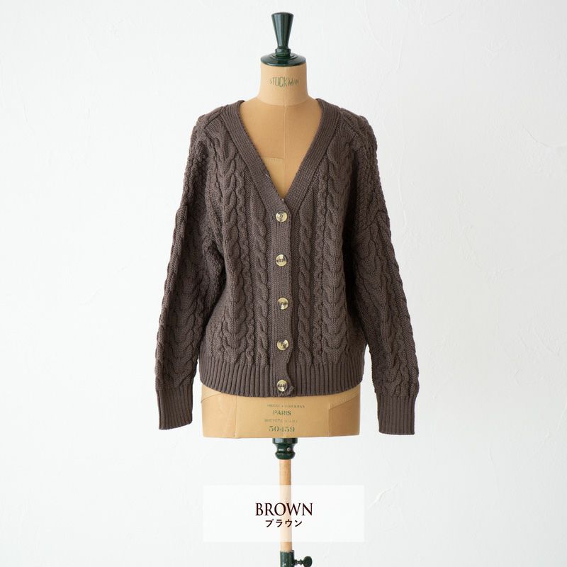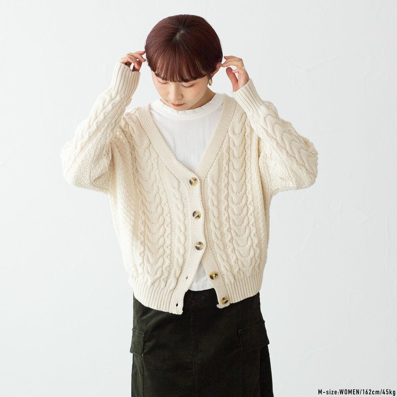 オールドダービー ニットウェア アラン ケーブル Vネック カーディガン JM4001 レディース ウィメンズ