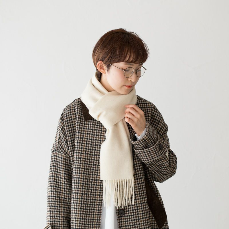 使用されているラムウールは、優しい肌触りと程良く薄手ながらも暖かいのがポイント。しっかりと長さがあるのでさらっと巻くだけでアレンジしやすく、お顔まわりを華やかに見せてくれます。使える無地からチェック柄など、カラー展開も豊富で、巻くだけで暖かいだけでなく、冬のコーデのアクセントに♪
