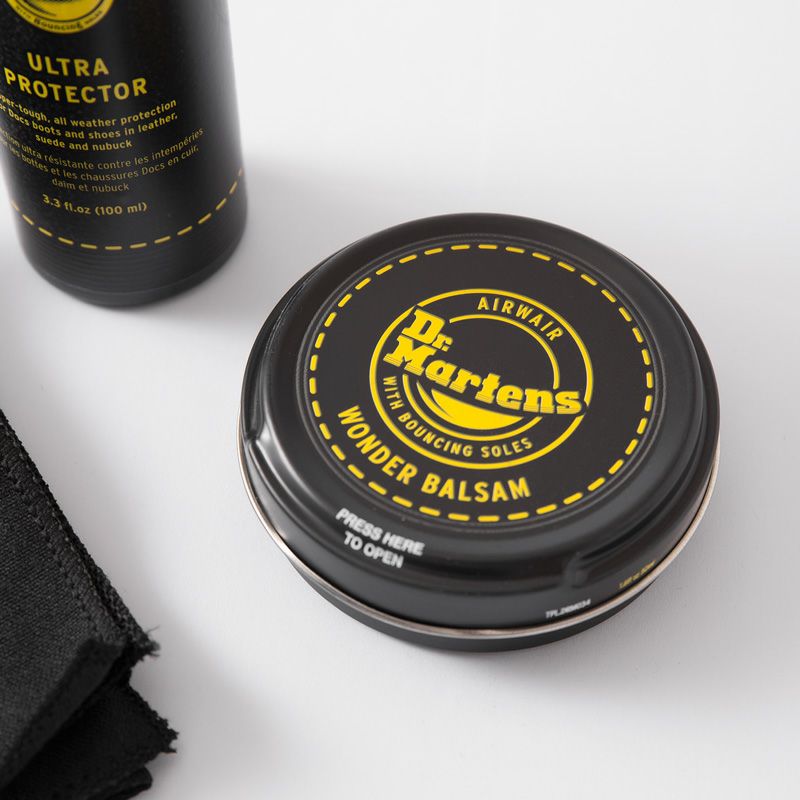 ドクターマーチンのフットウェアのお手入れに必要なアイテムを揃えたシューケアキット。