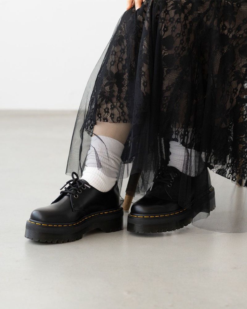 こちらはクラシックな定番3ホールシューズ「1461」に、約4cmのスタックソールをプラスした厚底モデルです。