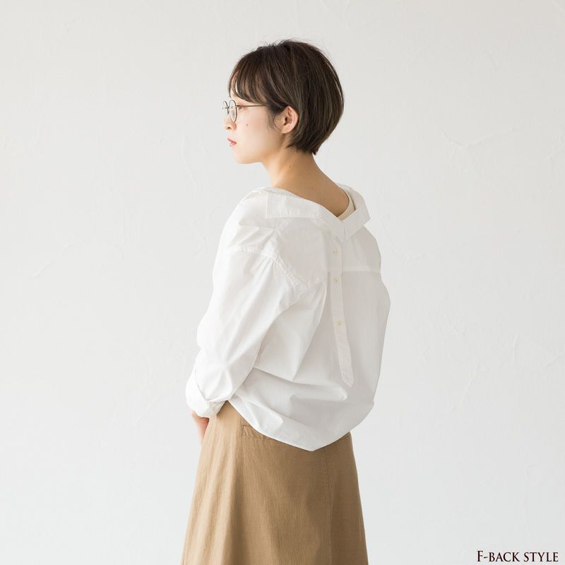 糸の段階で夾雑物や短い繊維を徹底的に取り除き、光沢に優れたコーマ糸で織り上げた上質なコットン生地。適度なハリとしなやかさを持つファブリックを使用し、vintageシャツのディテールを元にデザインされています。前後どちらでも着用でき、ウエスト内側の釦とホール、共ヒモを組み合わせることで6通りの着こなしが可能。リボンを取り外したプレーンな着こなしから、フロントを開けて羽織として、ウエストマークすればブラウジングシャツやカシュクールにも変化します。きっちりとボタンを留めたグッドガールなスタイルはもちろん、襟を抜いたフェミニンな着こなしまで、全く異なる表情を演出してくれるユーティリティーアイテム。 生地、縫製から加工仕上げまで国内仕上げの信頼のMADE IN JAPAN製品です。
