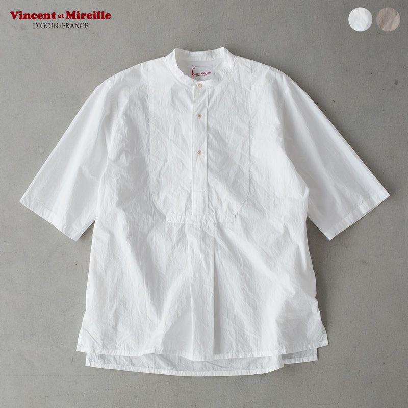 ヴァンソンエミレイユ ハーフスリーブ グランパ シャツ VM211CT11021 メンズ 半袖シャツ