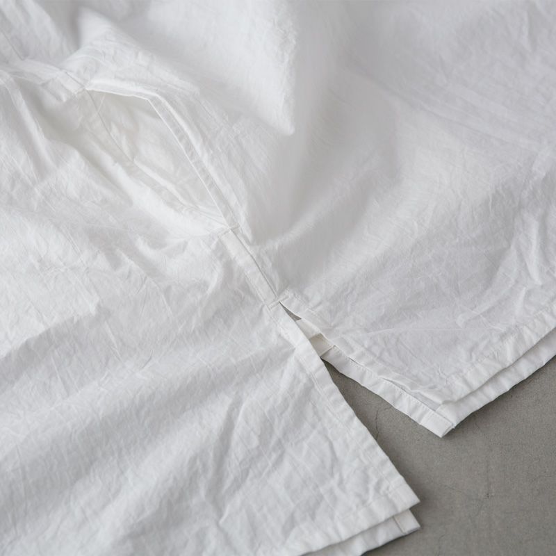 こちらの半袖シャツはヨーロピアン・ビンテージの中でも人気沸騰中のグランパシャツを、現代でもバランスよく着こなせるようモダナイズしています。すっきりとしたバンドカラーに印象的なイカ胸デザイン、サイドポケットが取り付けられ使い勝手も良好です。ハリがあり豊かなシワ感を楽しめるタイプライタ生地の風合いも◎。国内生産による高いクオリティーも嬉しいポイント。全体にゆったりとしたビッグシルエットでリラックス感のあるコーディネートが楽しめます。