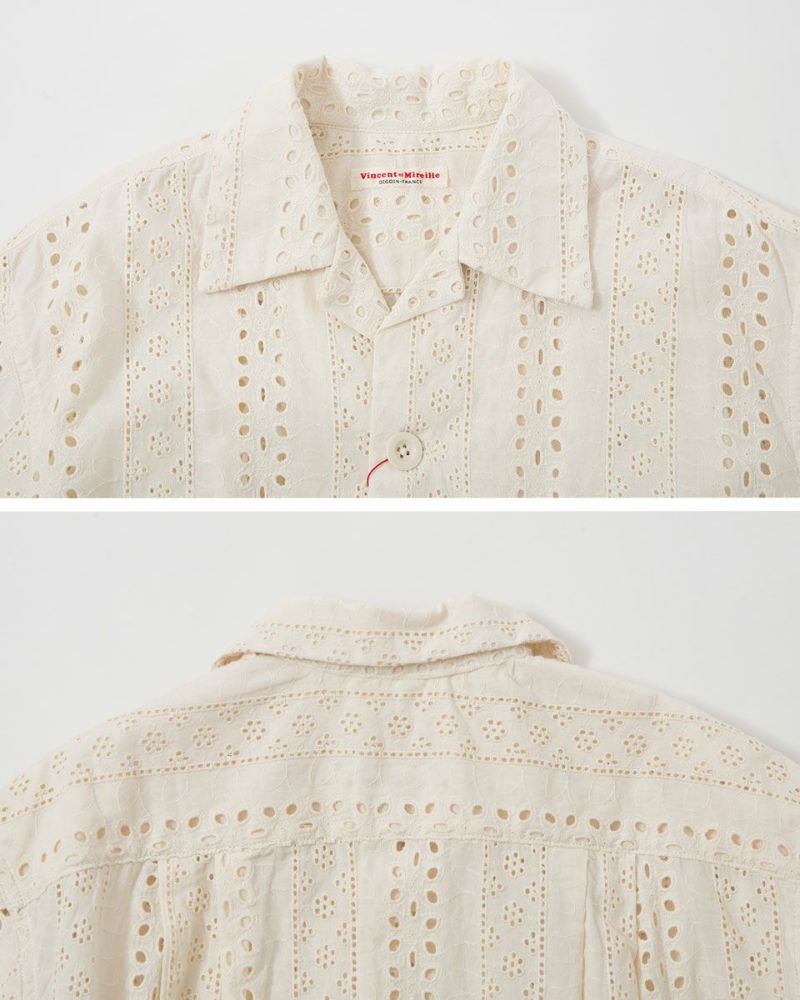 全面にあしらわれた繊細な刺繍が目を引く、夏にぴったりなリラックス感と上品さを兼ね備えたオープンカラーシャツ。軽やかなコットン素材に上品な花柄刺繍を施した、ヴァンソンエミレイユならではの一着です。