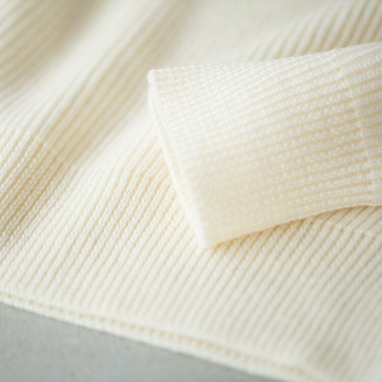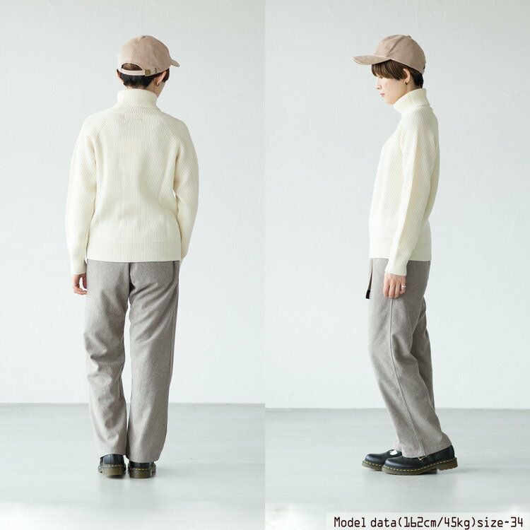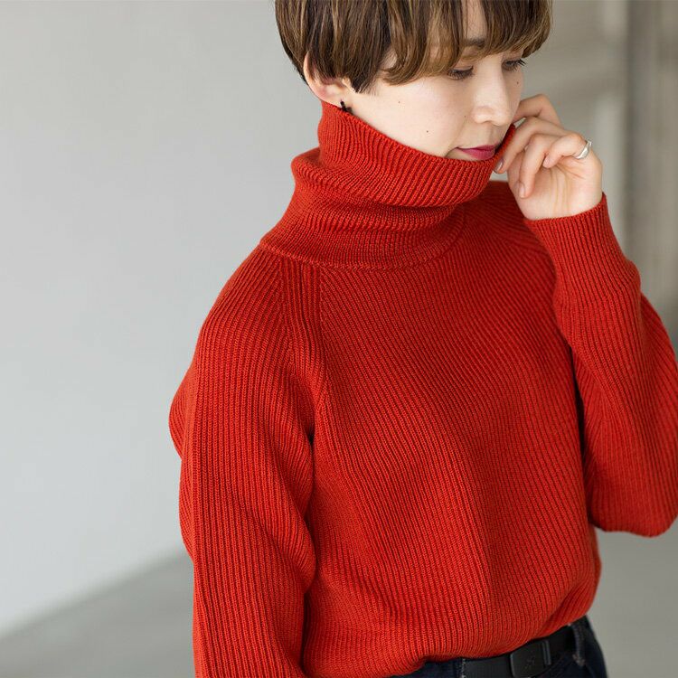 網目の詰まった8ゲージの畦編みが暖かい、上品な印象のタートルネックセーターです。