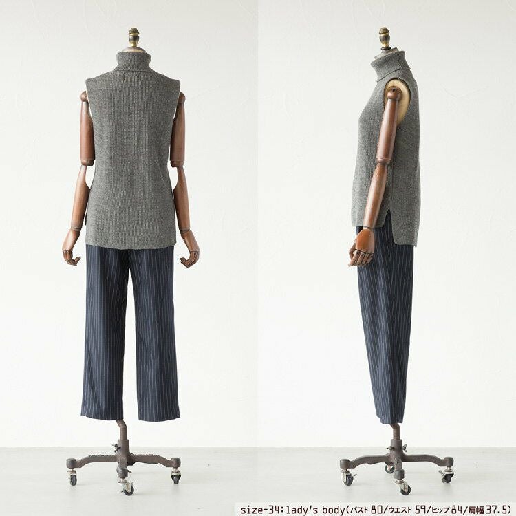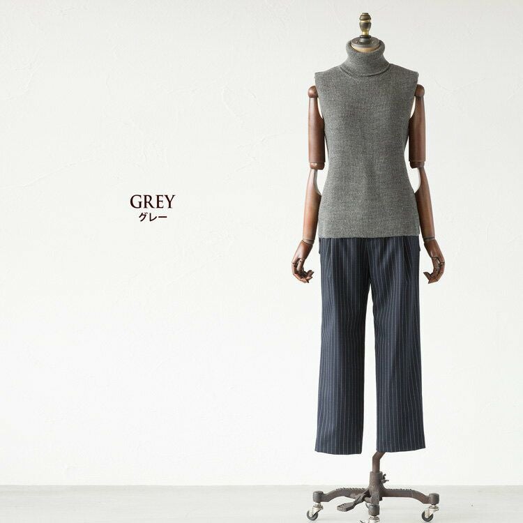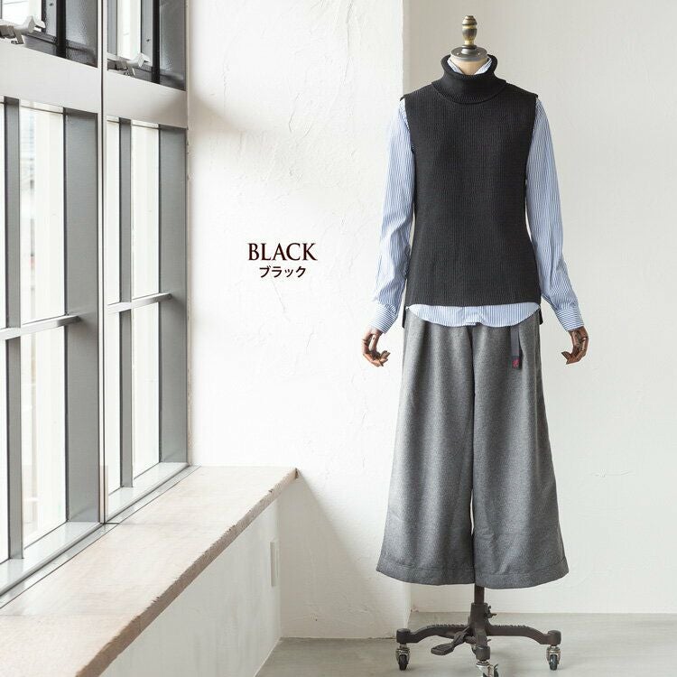 こちらは網目の詰まった8ゲージの畦編みが暖かい、上品な印象のタートルネックベストです。