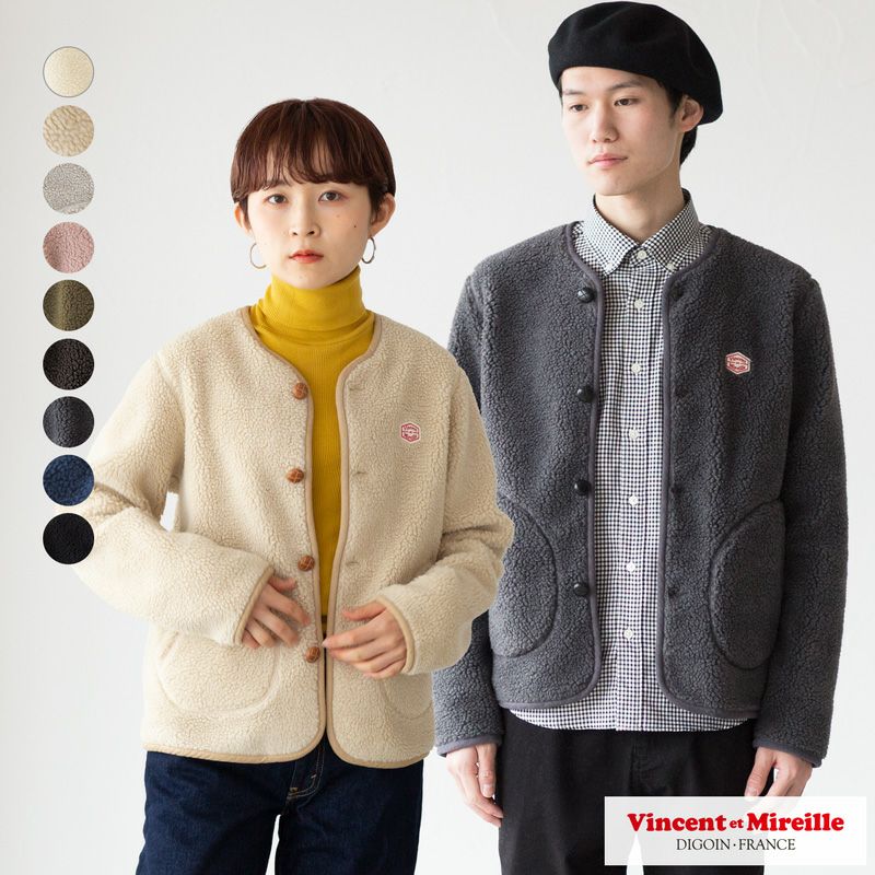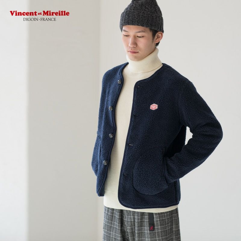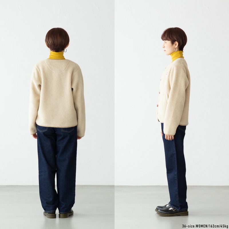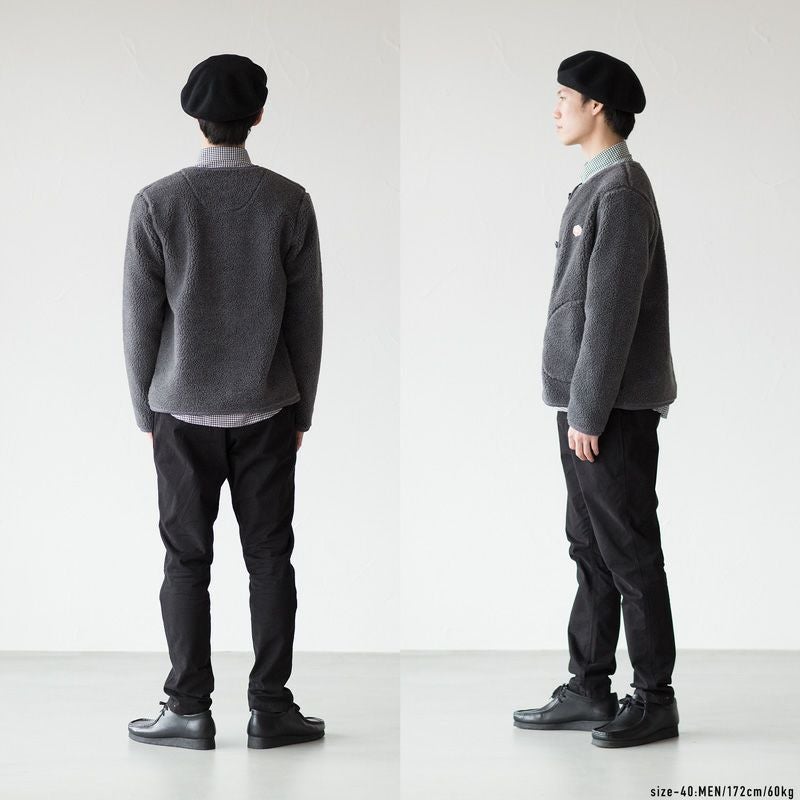 こちらはモコモコとしたボア素材で仕立てた、ユニセックス(男女兼用)カーディガンです。