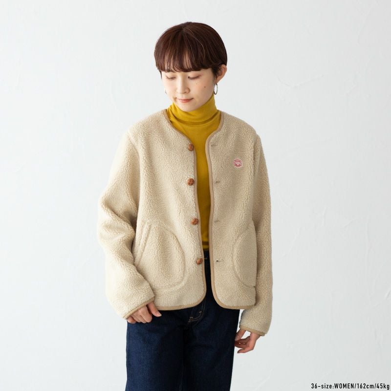 軽い着心地ながら寒い季節でも十分な保温性を持ち、ボアの質感がコーディネートにあたたかな雰囲気をプラスしてくれそう。