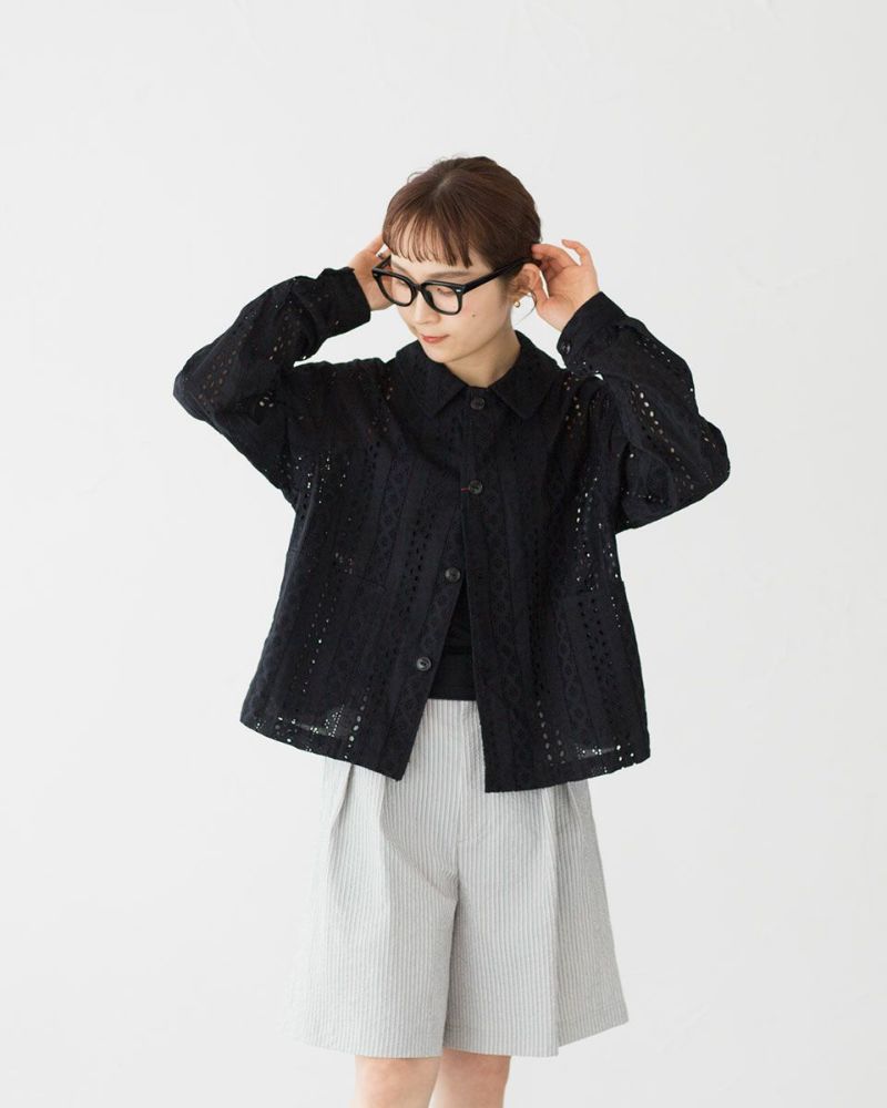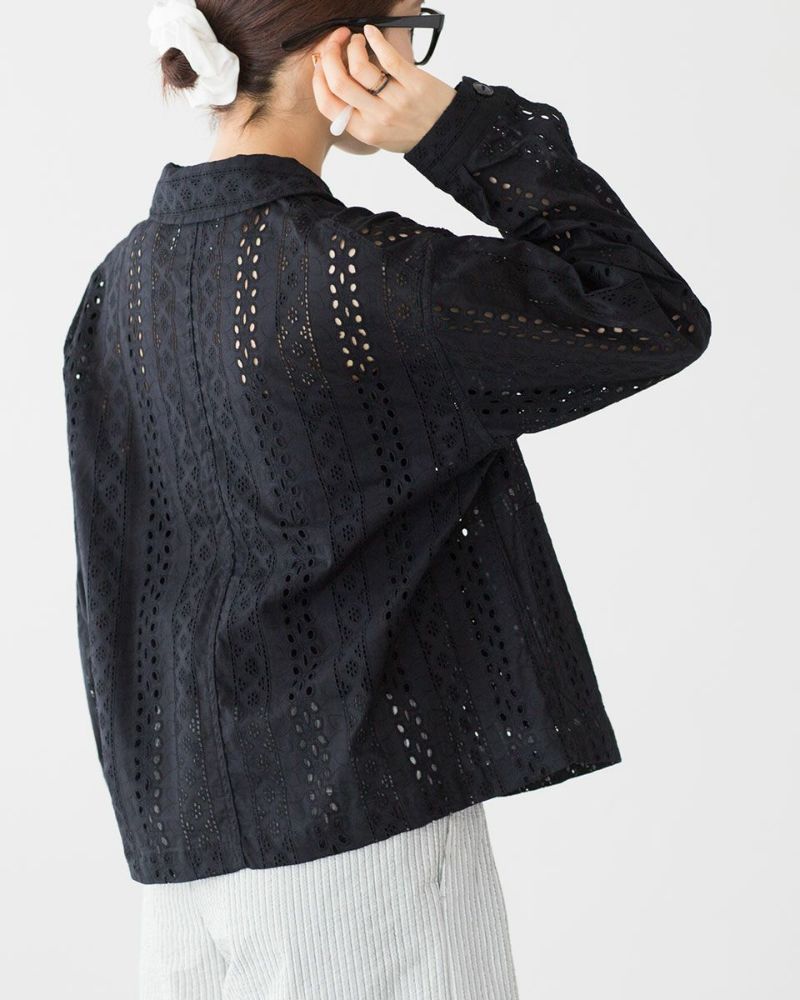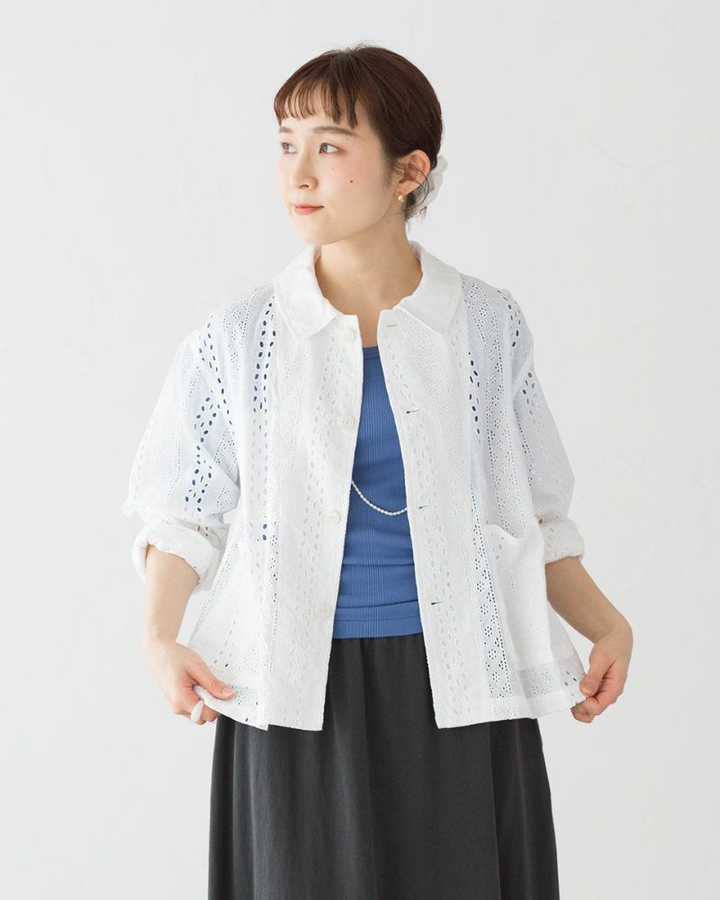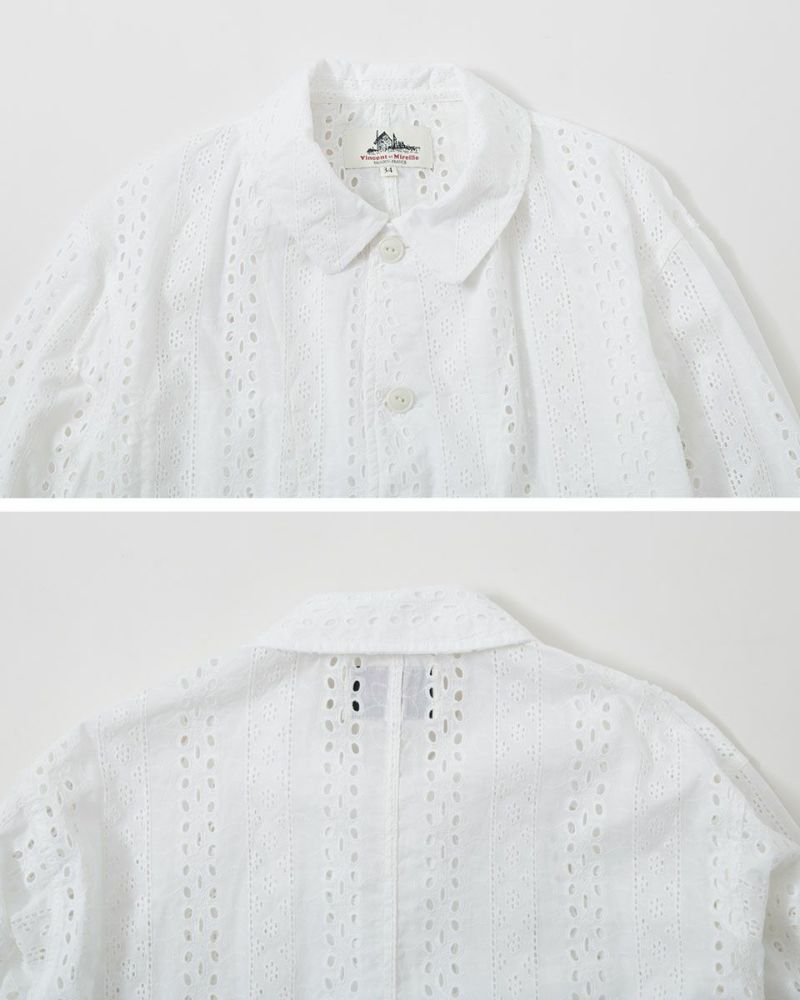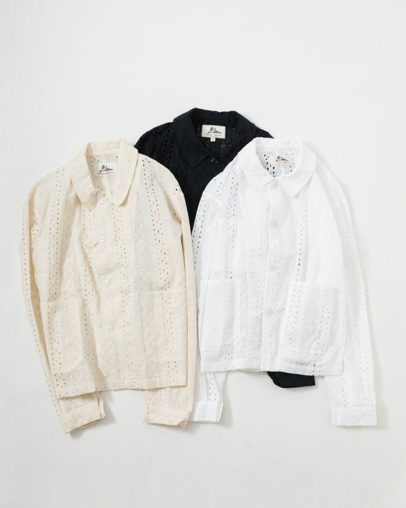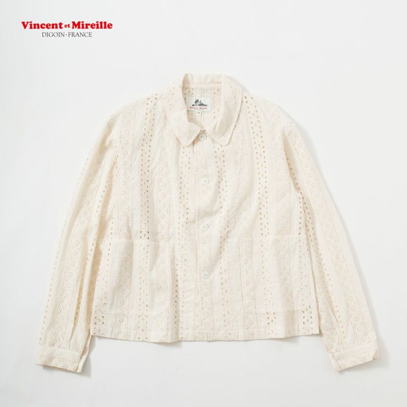 老舗フランスブランド、ヴァンソンエミレイユからクラシカルで品のある総刺繍カバーオールが登場。上質な素材と丁寧な仕立てが光る一着です。春〜秋口の羽織としてはもちろん、一枚でブラウス感覚で着こなすのも◎。