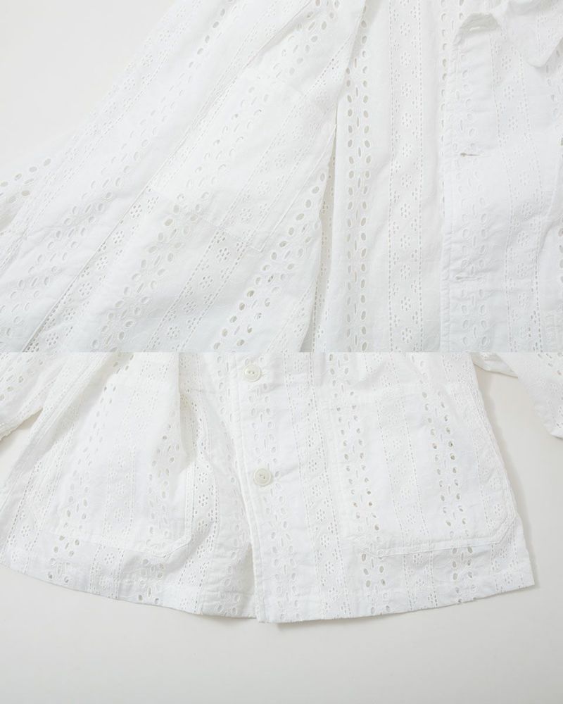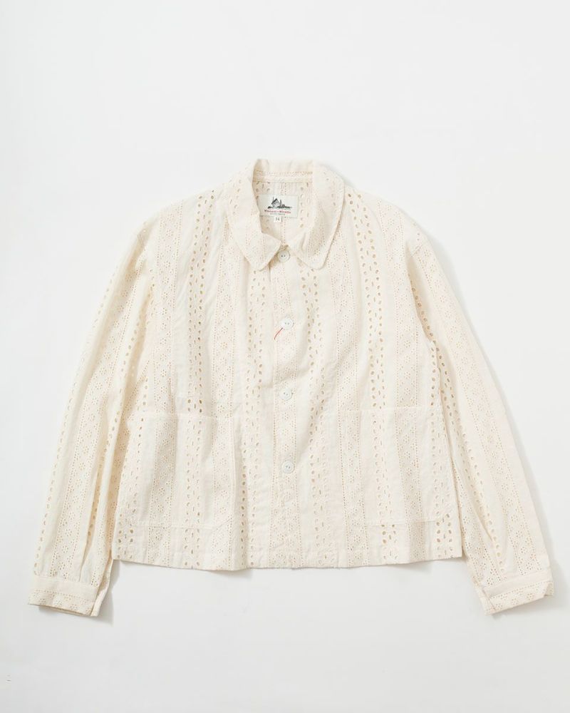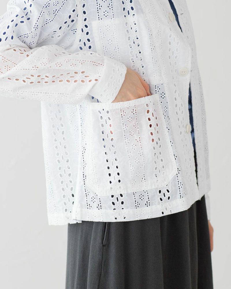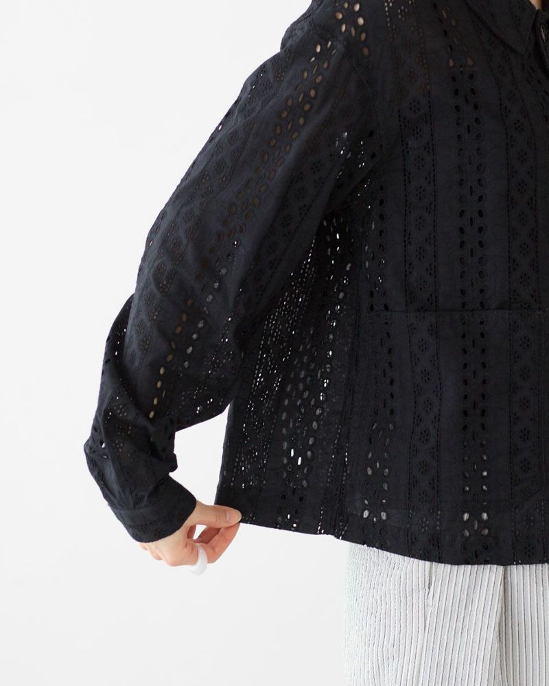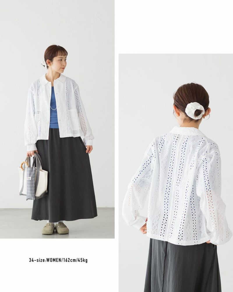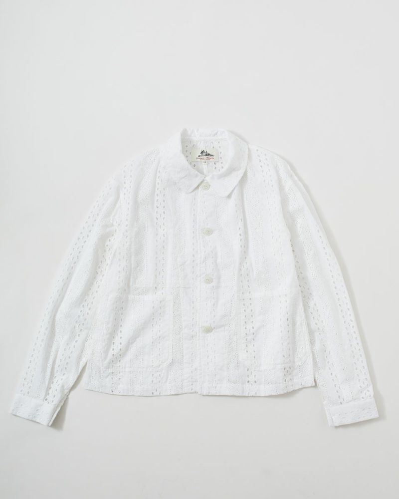 老舗フランスブランド、ヴァンソンエミレイユからクラシカルで品のある総刺繍カバーオールが登場。上質な素材と丁寧な仕立てが光る一着です。春〜秋口の羽織としてはもちろん、一枚でブラウス感覚で着こなすのも◎。