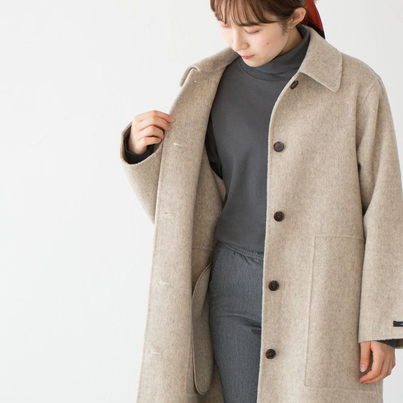 大きめの襟と、ワイドめのコクーンシルエットがクラシカルな印象のバルカラーコート。なめらかなウール混素材を単衣で仕立てた軽い着心地。アームホールも広めに取られているので、厚手ニットをインナーにしてもシルエットを崩さずに着られます。同素材のウエストベルトは取り外し可能。シルエットを生かしてシンプルに着こなすのはもちろん、ウエストをマークしたモダンな着こなしもお楽しみいただけます。