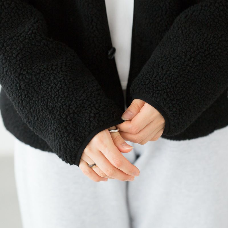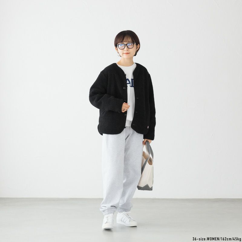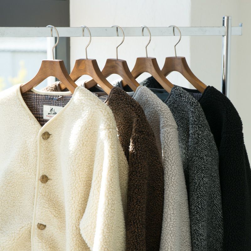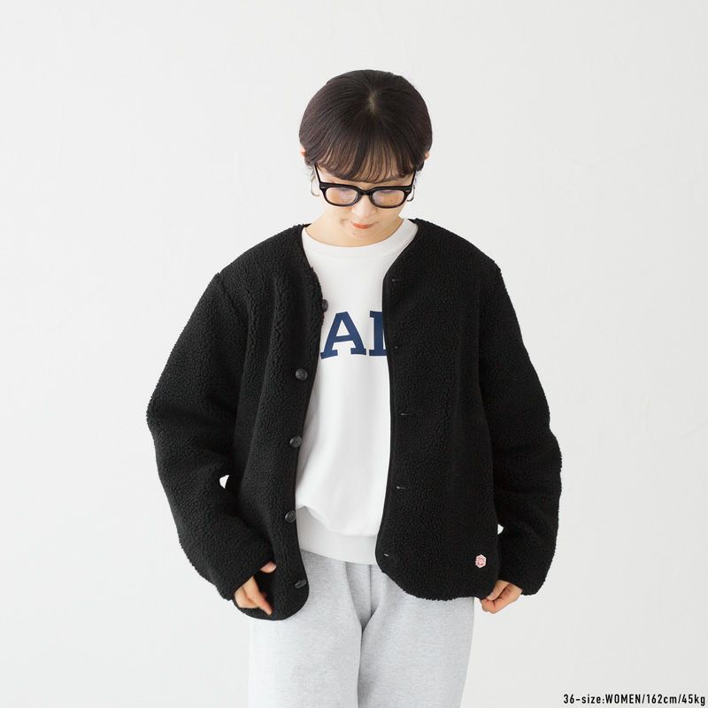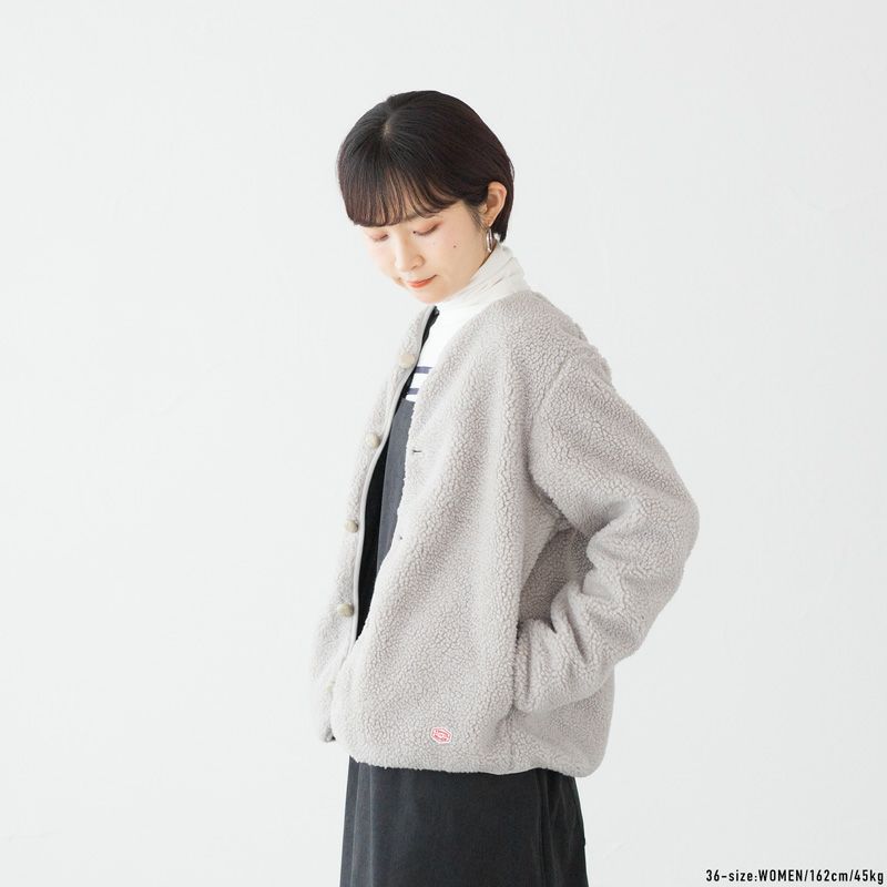 こちらはゆったりシルエット&裏地付きにアップデートされた、男女兼用カーディガンタイプのボアジャケットです。