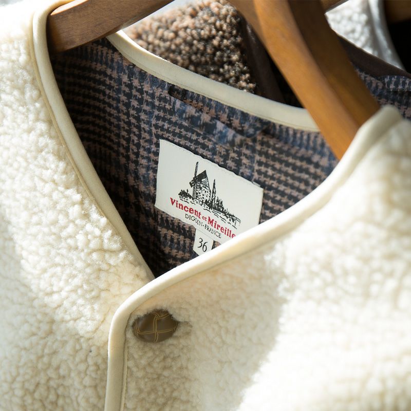 外側は保温性が高く、軽い着心地のボア素材。内側は袖通りのいいサラサラ裏地。上着を脱いだときにさりげなく見えるチェック柄も◎。