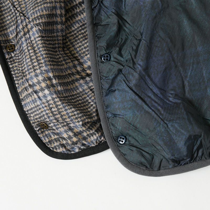 スウェットやニットの上からもささっと羽織れて、気軽にお出かけできるカジュアルさがポイント。非常に軽く、室内で着ていてもストレスにならない着心地の良さ。
