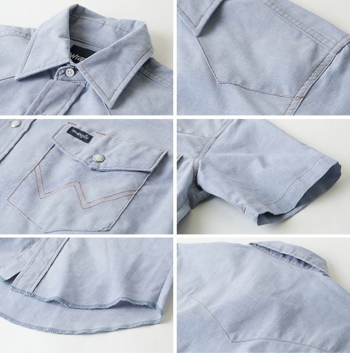 ジーンズと並ぶラングラーを鉄板アイテム、ウエスタンシャツの半袖モデル。こちらはカジュアルシャツの定番素材、シャンブレーを使った米国企画です。デニムやツイルよりも薄地の生地なので夏でも快適。