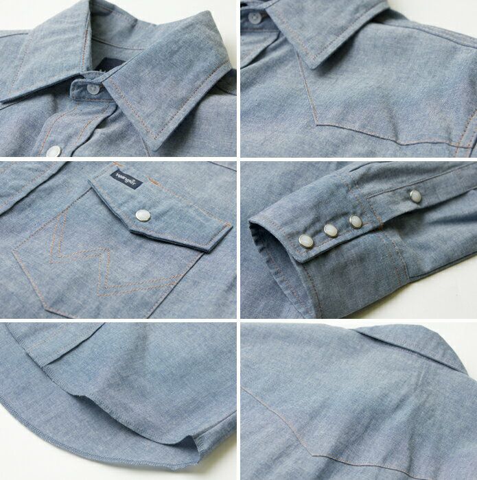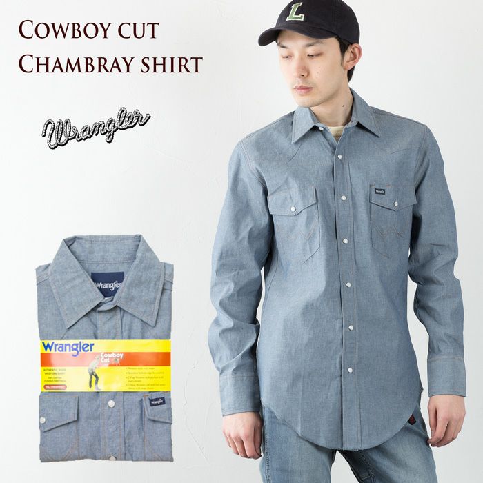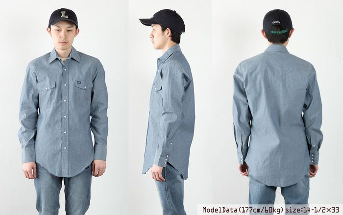 ジーンズと並ぶラングラーを代表するアイテム、ウエスタンシャツ。こちらはカジュアルシャツの定番素材、シャンブレーを使った米国企画モデルです。ウエイトは着回しやすい5oz。カラーは経糸に先染インディゴ、緯糸に白を使って平織りしたシャンブレー特有の霜降色。未洗い地は硬めの生地感は、着用と洗濯を繰り返すうちに体に馴染み、こなれた風合いに変化します。程よくシェイプされたきれいなシルエット、裾はタックインするために長めの作りに。カウボーイ達に絶大な支持を受けるラングラーならではのホンモノ感たっぷりのアイテムです。ガンガン着込んで 育ててください。