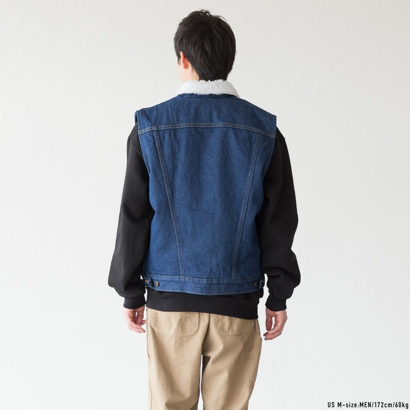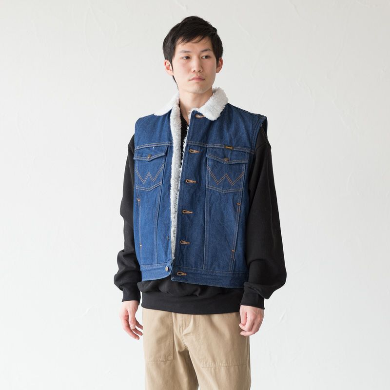 Wrangler 伝統を受け継ぐブロークンデニムの裏ボアベスト。
