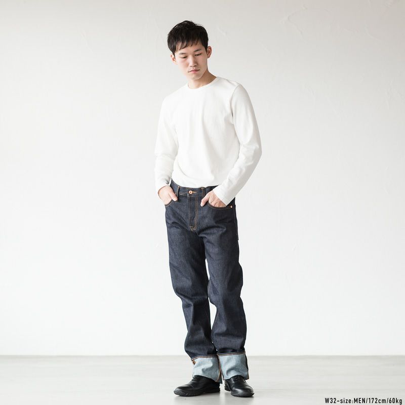 こちらは素材・パーツ・製造工程を見直すことでフレンドリープライスを実現しつつ、高品質なアメリカンメイドのデニムウェアを提供することをコンセプトにしたシリーズ「TELLASON STOCK」。ほどよい股上の深さとオーセンティックなシルエットでつくられた、ストレートレッグのリジッド(未洗い)デニムパンツです。