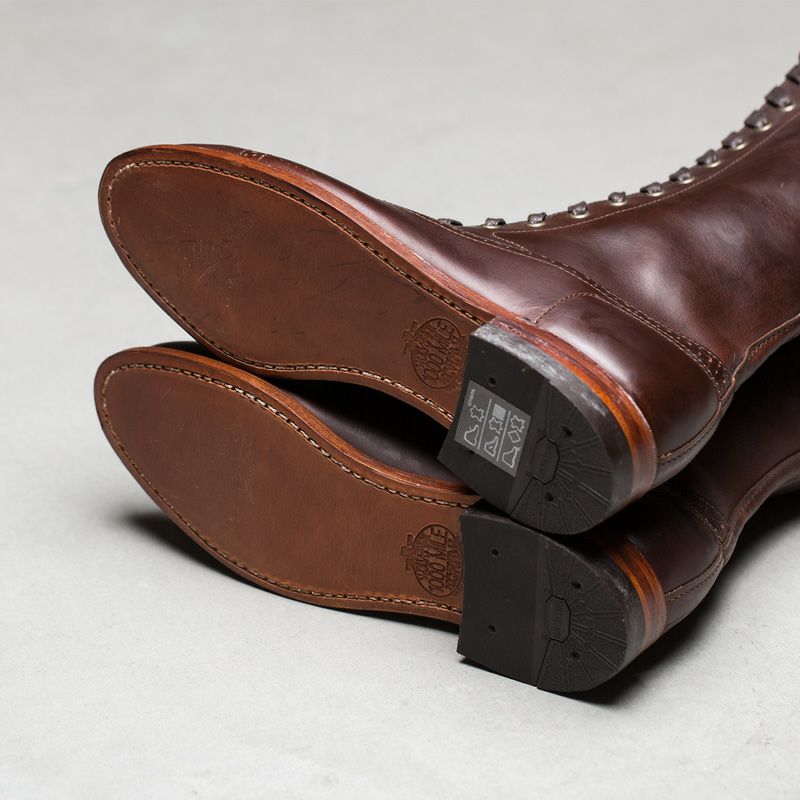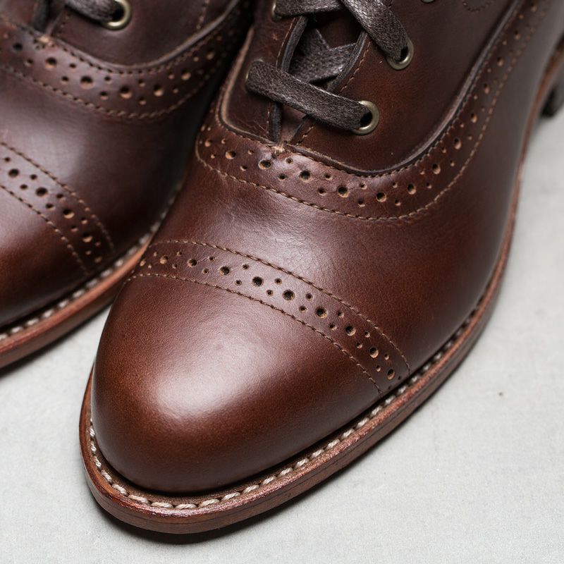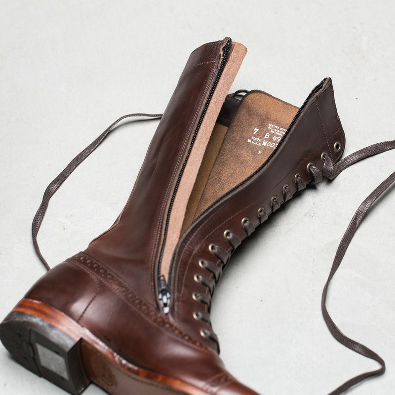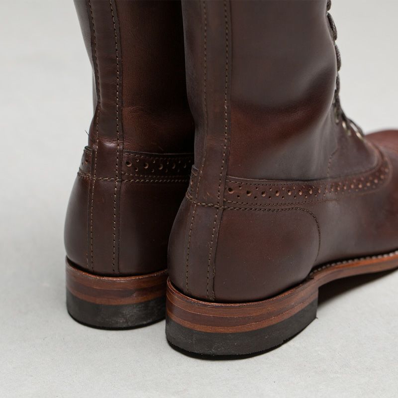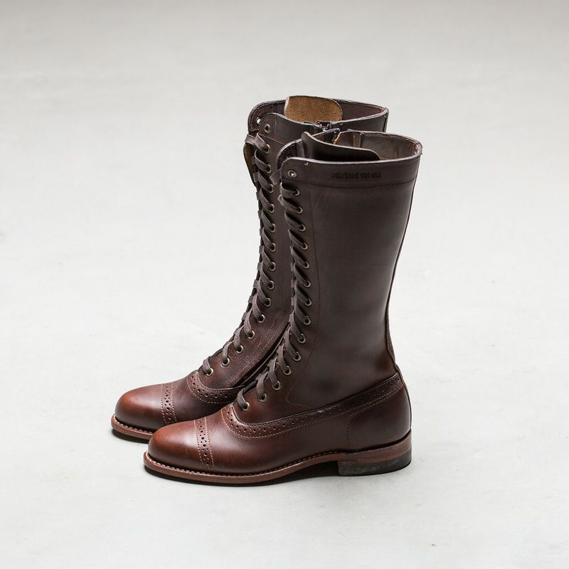 WOLVERINE クォーターブローグの編み上げブーツ。