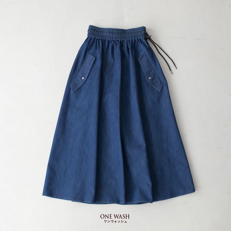 WILD THINGS 高機能デニム素材の快適フレアスカート。