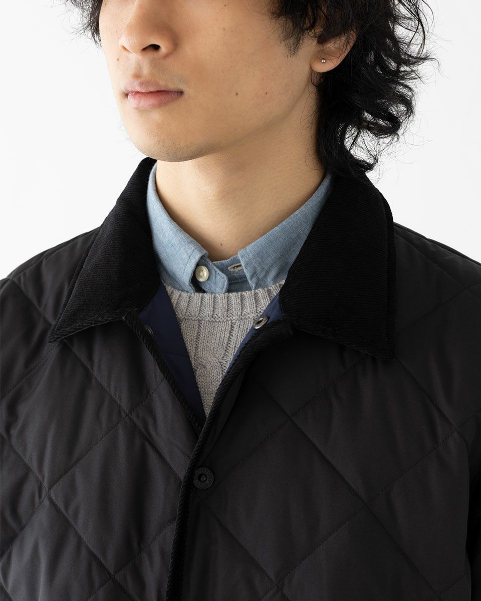 ダイヤモンドキルトの都会派ロングコート。