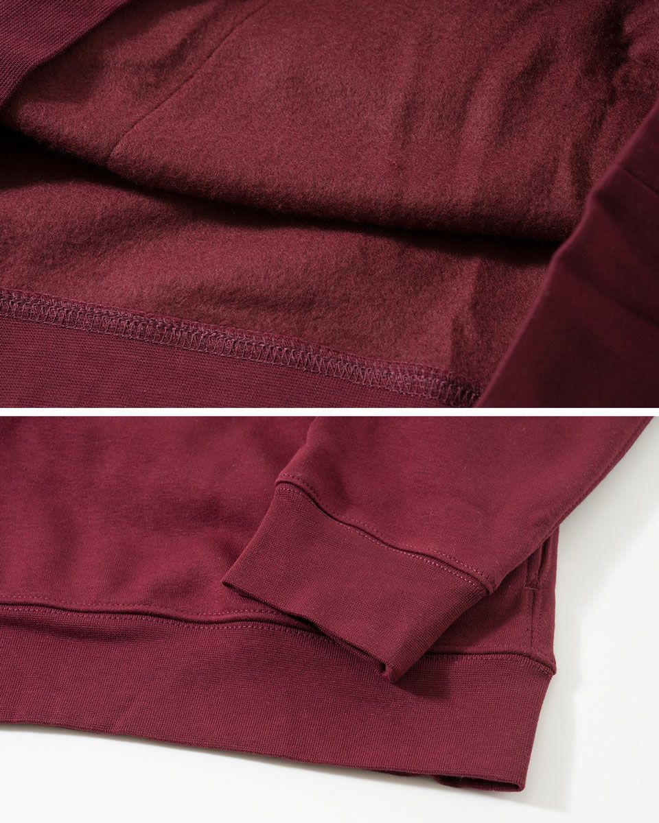 極厚で暖かい度詰め裏起毛スウェットのノーカラージャケット。