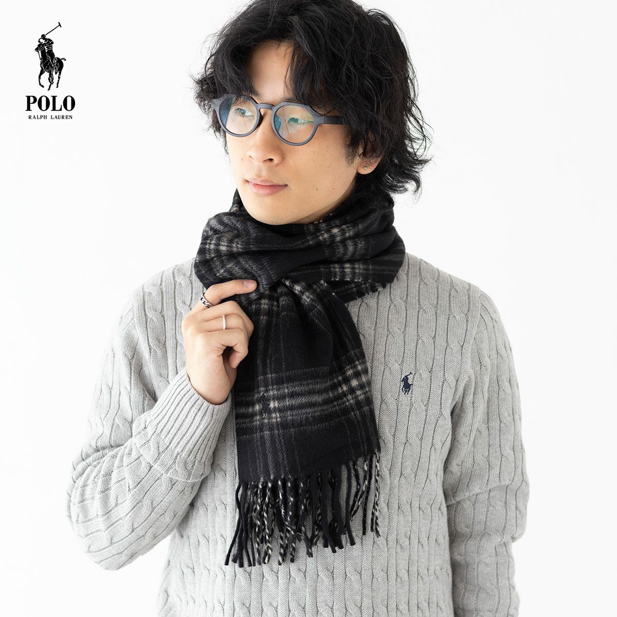 【イタリア製】ポロ ラルフローレン チェック マフラー カシミア ブレンド スカーフ POLO Ralph Lauren PC0946 ウール ニット