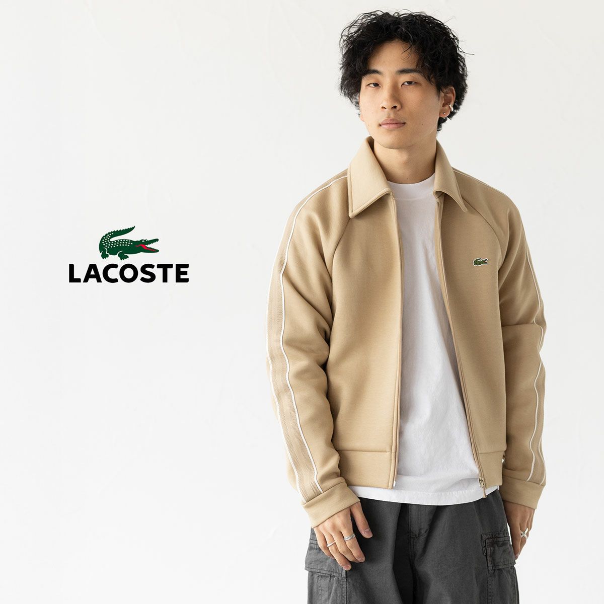 他の画像を見る ジャージ感覚で羽織れるハリ感スウェット ラコステ フランス製 ショルダーテーピング ダブルフェイス スウェット ジャージ ブルゾン LACOSTE SH0029-10 メンズ 販売価格 ¥ 29,700 税込 カートに入れる お気に入りに登録する