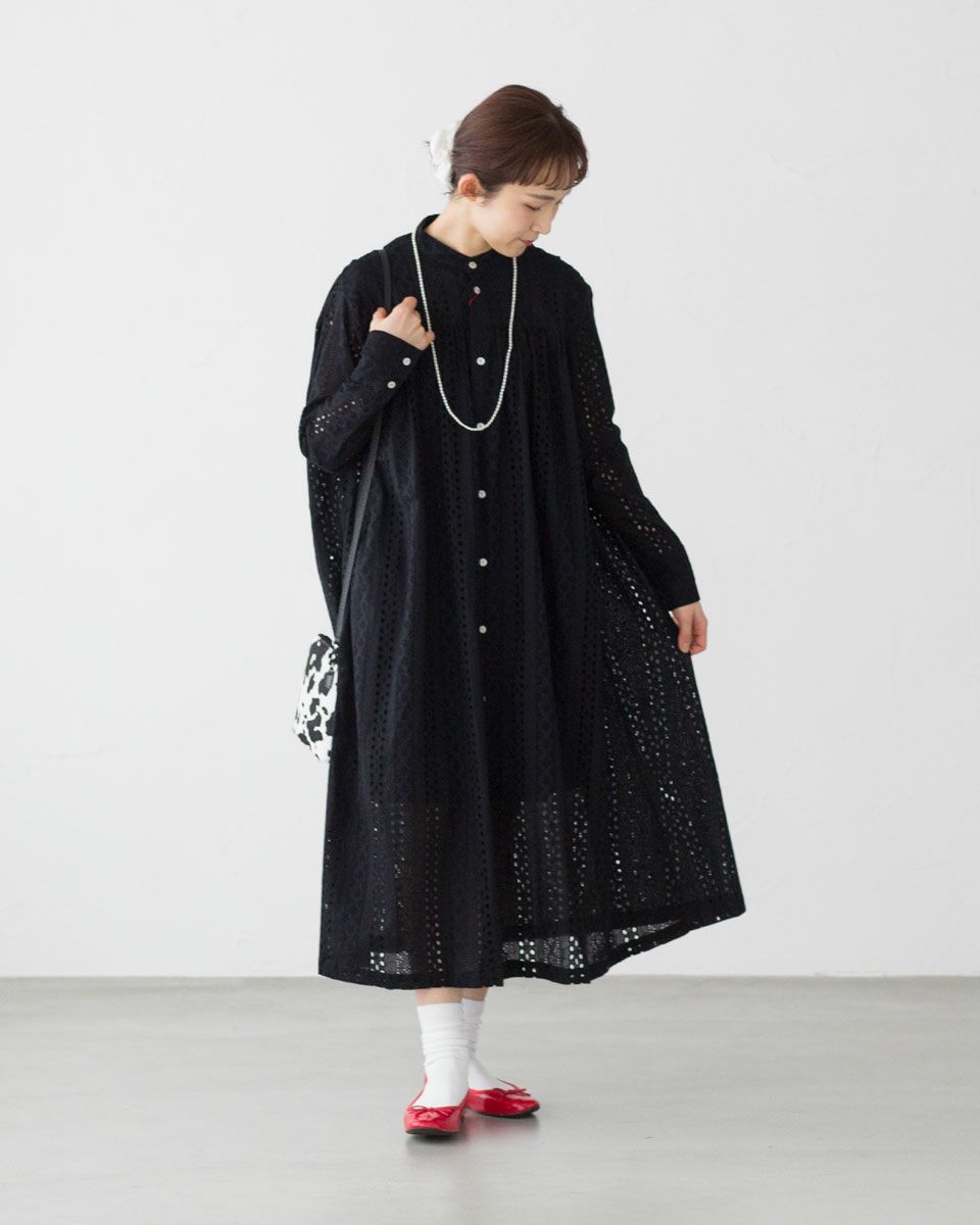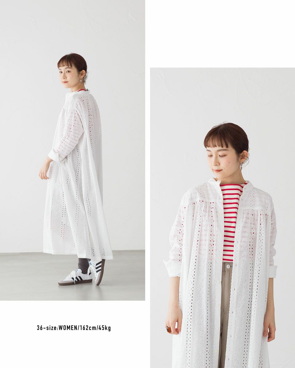 他の画像を見る 一枚で華やぐ、繊細な総刺繍ワンピース。 ヴァンソンエミレイユ ロングスリーブ ドレス Vincent et Mireille VM252HB00052/VM251IN00052 ワンピース レディース 総刺繍 コットン シアー シースルー 前開き スタンドカラー 販売価格 ¥ 20,900 税込 カートに入れる お気に入りに登録する